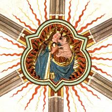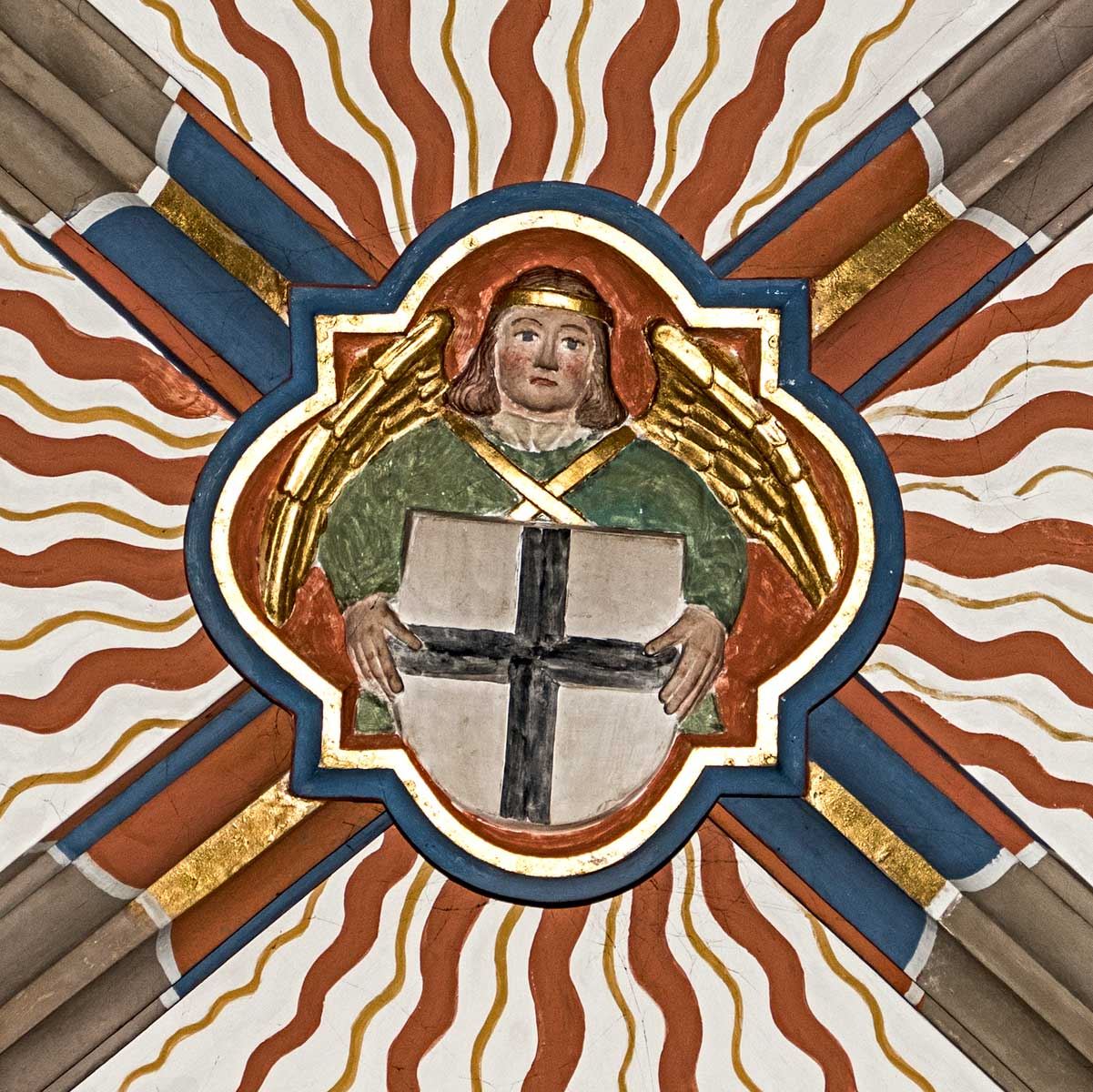 Der Begriff Schlußstein bezeichnet bautechnisch den letzten Stern im Scheitel eines Gewölbes, der die Wölbung nach oben abschließt. Gemäß seiner konstruktiven und ästhetischen Bedeutung wird er in der Spätgotik mit farbig gefaßten, figürlichen Reliefs verziert