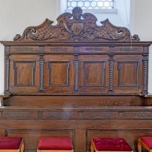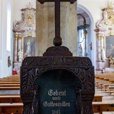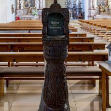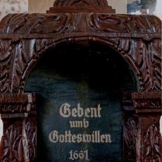 Um die Mitte des 17. Jahrhundert entstand der kunstvoll geschnitzte Opferstock „Gebent umb Gotteswillen 1661“. Er steht heute vor einer Säule links unter der Empore.