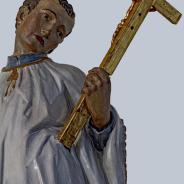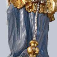 Allzu entschieden wendet das Jesuskind seinen Blick mit dem Segensgestus zur Seite, sodass man sich hier die zur Anbetung herantretenden heiligen Drei Könige vorstellen könnte.