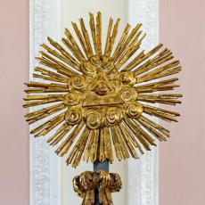 Der goldene Hintergrund des Thrones ist ausschließlich der Aufnahme der Monstranz mit dem ausgesetzten Allerheiligsten vorbehalten.