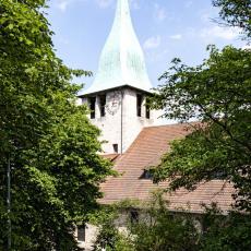 Der charakteristische Turm und der stilvolle würdige Kirchengebäude stehen prägend mitten im Stadtteil am Hang. Integriert sind in das Kirchengebäude eine ganze Reihe großer und kleiner Räume, für Veranstaltungen und Treffen von Gruppen und Kreisen von Kirchen- gemeinde und Begegnungsstätte.
