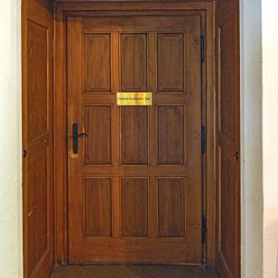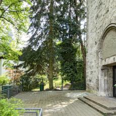 1.31: kleiner Kirchplatz und Zugang "zum 2. UG der Kirche" - gab es im Türbogen (1.32) früher ein Fresko?