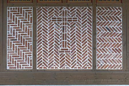 Fünf Wandsegmente - von vorn (N) nach hinten (S) - links die Bergseite (W), rechts die Talseite (O). Am Ende zwei Darstellung des Kreuzes in Segment 3 (Mitte des Kirchenschiffs).