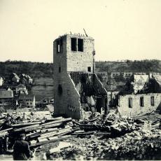 In der Nacht vom 10. auf 11. März wird die Kirche durch Brandbomben und Sprengbomben bei einem Luftangriff auf Kaltental zerstört. |