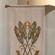Der Ambo steht wie der Altar im Messingrund umgeben. Hier führt es geöffnet über die Stufen ins Kirchenschiff. Die Wirkung des verkündeten Wortes ist an uns gerichtet. In Blütenform, aus dem Boden wachsend, ist der Ambo auf der tiefer liegenden Wortebene aufgestellt. Zu beiden Seiten sind dann die Sedilien angeordnet.