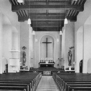 Am Sonntag, 9. November 1969, hatten wir die letzte hl. Messe in unserer Franziskuskirche gefeiert. Dann begann die Renovation mit all ihren Mühen. Wir mußten in den Gemeindesaal umziehen und dort alle Gottesdienste halten. Sicher sind alle von Herzen froh, wenn nun diese Zeit des Notbehelfs zu Ende geht. Der knarrende Fußboden, die schlechte Akustik im Saal mit seiner schlechten Beleuchtung und andere unliebsame Begleiterscheinungen ließen uns spüren, was wir an einem schönen Gotteshaus haben. Wir hoffen sehr, daß unsere liebe Franziskuskirche nach der Neugestaltung des Innenraums der ganzen Gemeinde gefallen wird.